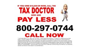 Below is a picture of their ad. The Tax Doctor San Antonio Texas. Yes I know this commercial is at least a year old but cable channels keep playing this horrible one.